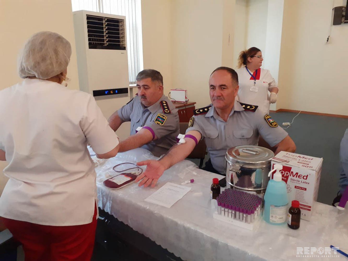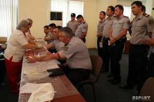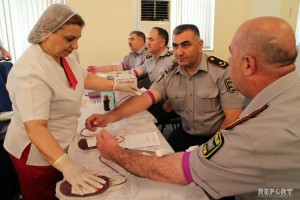 Polis əməkdaşları tibbi müayinədən sonra qan veriblər.