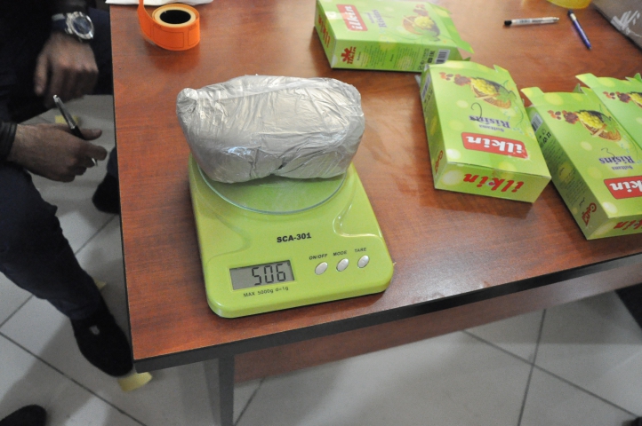Gömrük yoxlaması zamanı 1997 kişmiş qutusundan 100-də xüsusi üsulla dördbucaq şəkildə qablaşdırılaraq qutulara yerləşdirilən 506 kiloqram narkotik vasitə heroin aşkar edilib. Avtomobilin sürücüsü yükün İran İslam Respublikasında yükləndiyini və son təyinat məntəqəsinin Belçika olduğunu, yükün içərisindəki narkotik vasitə-heroindən isə ümumiyyətlə xəbərsiz olduğunu bildirib. Aşkar edilən narkotik vasitə hal şahidlərinin iştirakı ilə qablaşdırılaraq götürülüb.