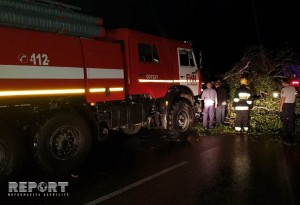 Gecə saatlarında əsən güclü küləyin təsiri nəticəsində böyük qovaq ağacı qırılaraq Göyçay-Ucar yoluna (2-ci km) aşıb. Avtosfer.az "Report"a istinadən xəbər verir ki, ağacın gövdəsi iri olduğundan yolun əsas hissəsinə düşüb və təxminən 1 saat nəqliyyatın hərəkətinə mane olub. Əraziyə dərhal DYP əməkdaşları cəlb edilib. Ağacın yoldan təmizlənməsi işinə rayon ərazisində yanğın hadisəsindən qayıdan FHN əməkdaşları köməklik edib. Ağacın iri budaqları və gövdəsi kəsilərək ərazidən çıxarılıb. Əraziyə yaxın olan Potu kənd nümayəndəliyindən bildirilib ki, həmin vaxtlarda rayonda təxminən yarım saat ərzində güclü küləklə müşahidə olunan burulğan olub. Elə ağacın aşmasına səbəb kimi də bu göstərilir. Bundan başqa isə hələ ki, heç bir tələfat qeydə alınmayıb.