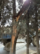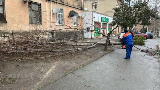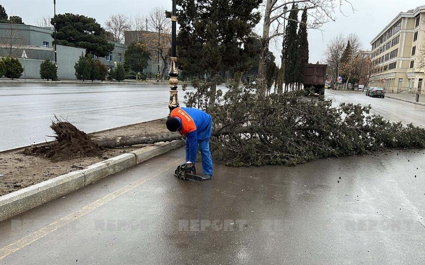 Güclü külək bəzi küçə və prospektlərdə 10-a yaxın ağacı kökündən qoparıb, bəzilərinin isə budaqlarını sındırıb.