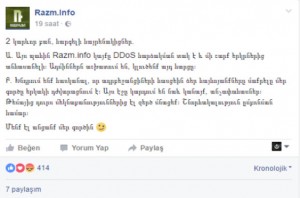 Azərbaycanlı hakerlər Ermənistanın “razm.info” saytını dağıdıb. Bu barədə hücumu həyata keçirən “Anti-armenia Team” adlı azərbaycanlı hakerlər qrupundan Avtosfer.az-a məlumat daxil olub. Məlumata görə, DDos hücumu nətəcəsində sayta dünən gecədən başlayaraq giriş mümkün olmayıb. Anti-armenia Team bəyan edir ki, bundan sonra da hücumlar artan xəttlə davam etdiriləcək.