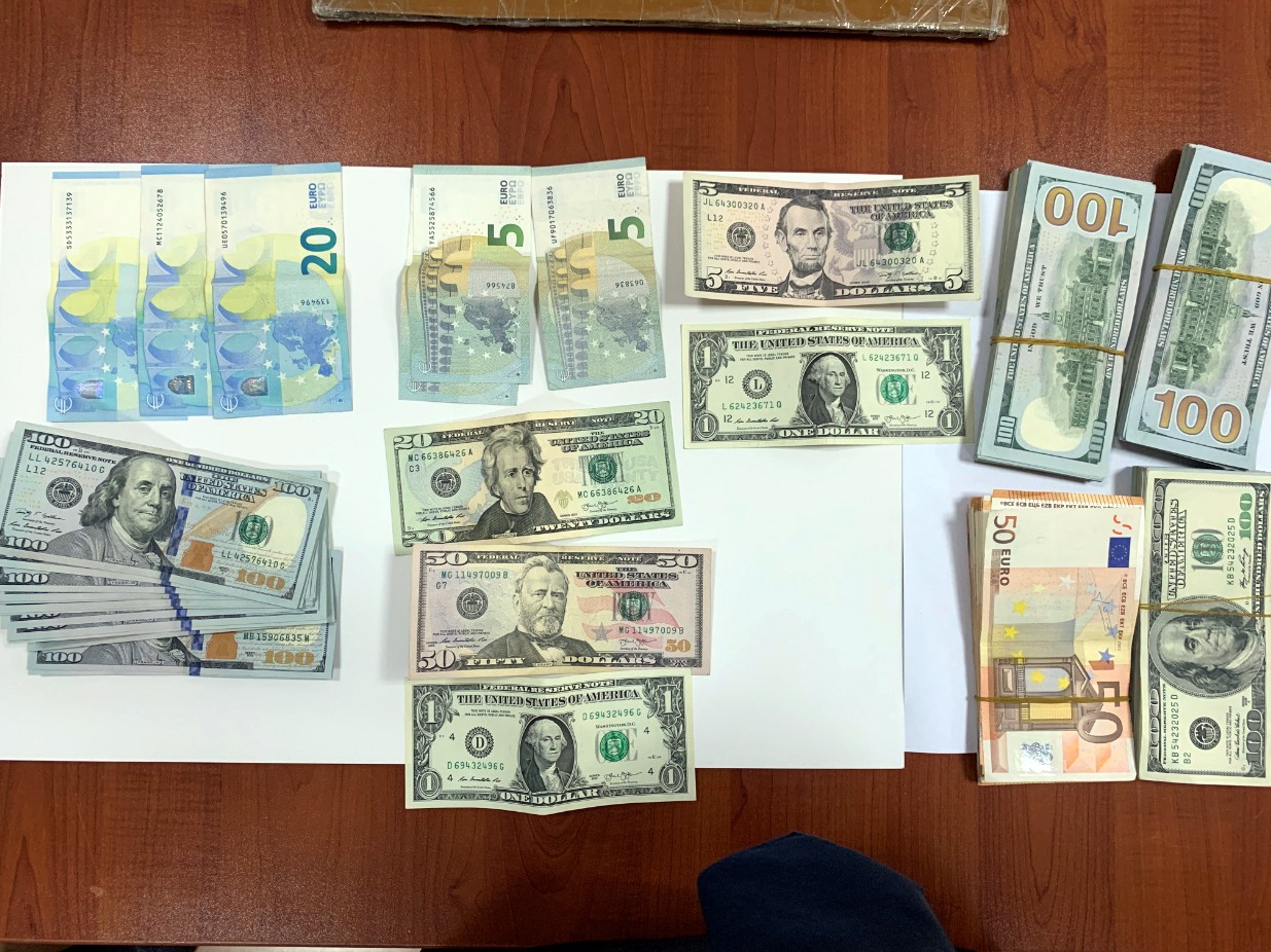 Nəticədə qara rəngli əl çantasının içərisində eyni rəngdə parça örtüyə salınan altlıq kimi düzəldilən karton və laminat materialdan olan lövhələrin arasında malların aşkar edilməsini çətinləşdirən üsulla gömrük nəzarətindən gizlədilən 28 000 ABŞ dolları və 3500 avro aşkar edilib