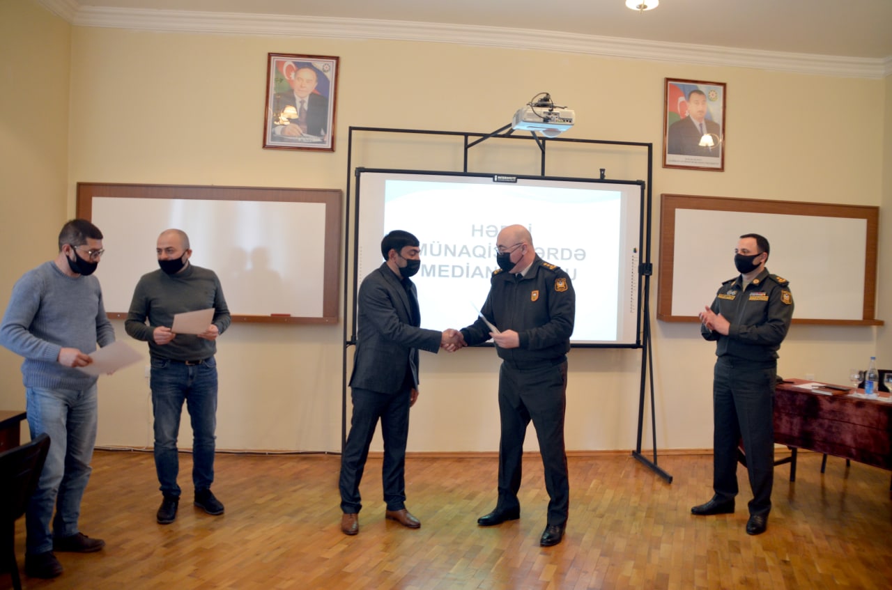 Kursantlara döyüş əməliyyatları zamanı mediadan yararlanmağın, məlumatı auditoriyaya çatdırmağın alternativ variantları açıqlanıb, bu istiqamətdə KİV nümayəndələri ilə iş üsulları haqqında məlumat verilib, eləcə də medianın resursları, onların üstün və zəif cəhətləri təhlil edilib.