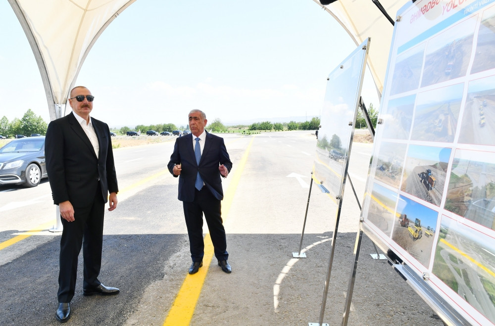 İlham Əliyev Əhmədbəyli-Füzuli-Şuşa yolunun 27 kilometrlik hissəsinin tikintisi ilə tanış olub - FOTO