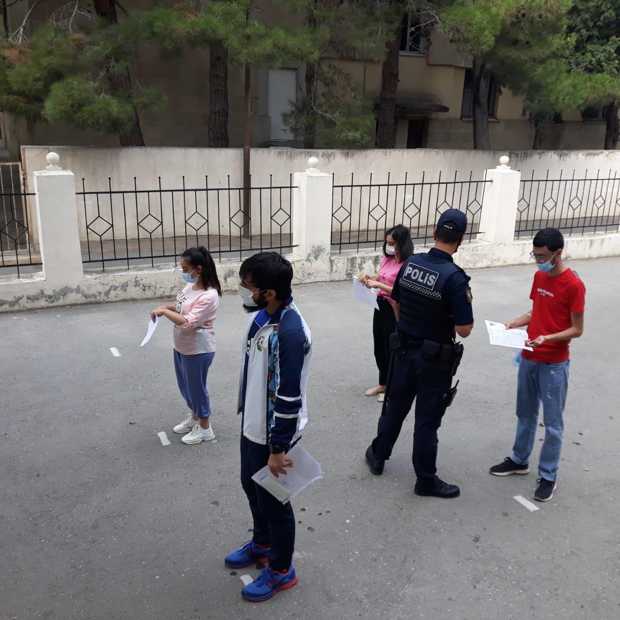 Bu barədə Bakı şəhər BPİ Mətbuat Xidmətindən Avtosfer.az-a verilən məlumata görə, iştirakçılar arasında sosial məsafənin qorunmasına və tibbi maskadan istifadə edilməsinə tərəfimizdən nəzarət olunur. İmtahan keçirilən ünvanlarda polis və Daxili Qoşunların hərbi qulluqçuları xidmət aparır. Bu məqsədilə ictimai təhlükəsizliyin tam və hərtərəfli təmin olunması üçün bütün zəruri tədbirlər icra olunur.