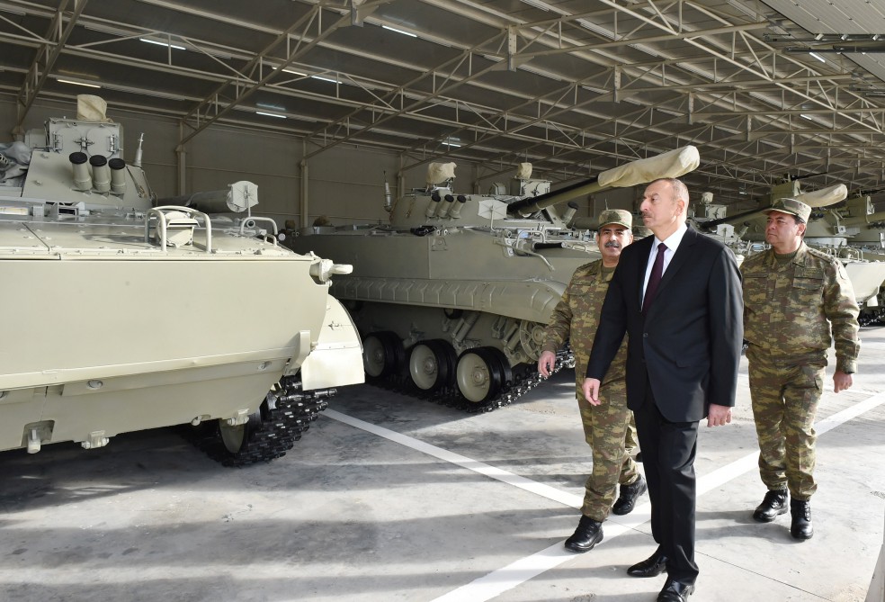 Ali Baş Komandan İlham Əliyev hərbi hissənin döyüş texnikasına baxdı, döyüş maşınlarından birini idarə etdi.