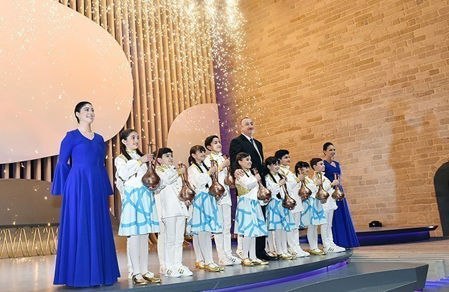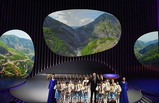 Azərbaycan Respublikasının Prezidenti İlham Əliyev Xəzər dənizindən götürülmüş suyu özləri ilə aparmaq üçün Azərbaycanın bütün guşələrindən gəlmiş uşaqlara təqdim etdi.