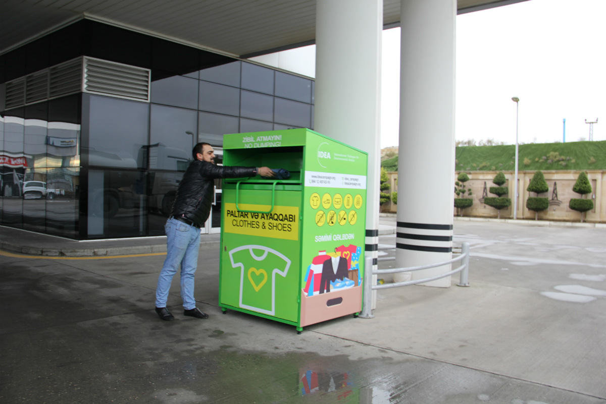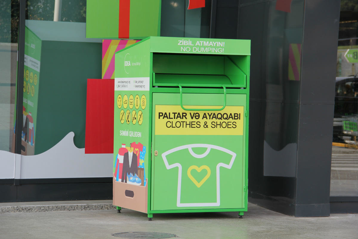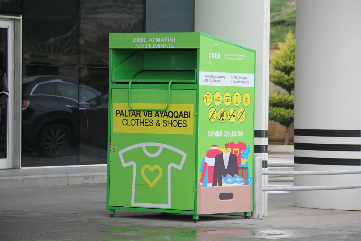 Təkrar istifadənin ətraf mühitə müsbət təsirini və geyim əşyalarına olan tələbatı nəzərə alaraq, IDEA İctimai Birliyi tərəfindən Bakıda istifadəsiz paltar və ayaqqabıların toplanması üçün ianə qutuları quraşdırılıb. Şəhərimizin müəyyən nöqtələrində yerləşdirilən qutulara insanlar artıq istifadə etmədikləri və paylaşmaq istədikləri geyimlərini yerləşdirə bilər. Bu cür xeyriyyə məqsədli təkrar istifadə qutuları ilkin olaraq “Bravo” hipermarketləri və Babək prospektində yerləşən “Bravo” supermarketdə, həmçinin həmin prospektdəki “SOCAR Petroleum” yanacaqdoldurma məntəqəsində quraşdırılıb. Yaxın vaxtlarda oxşar paltar toplanma qutularının Bakının digər münasib yerlərində də quraşdırılması nəzərdə tutulur.