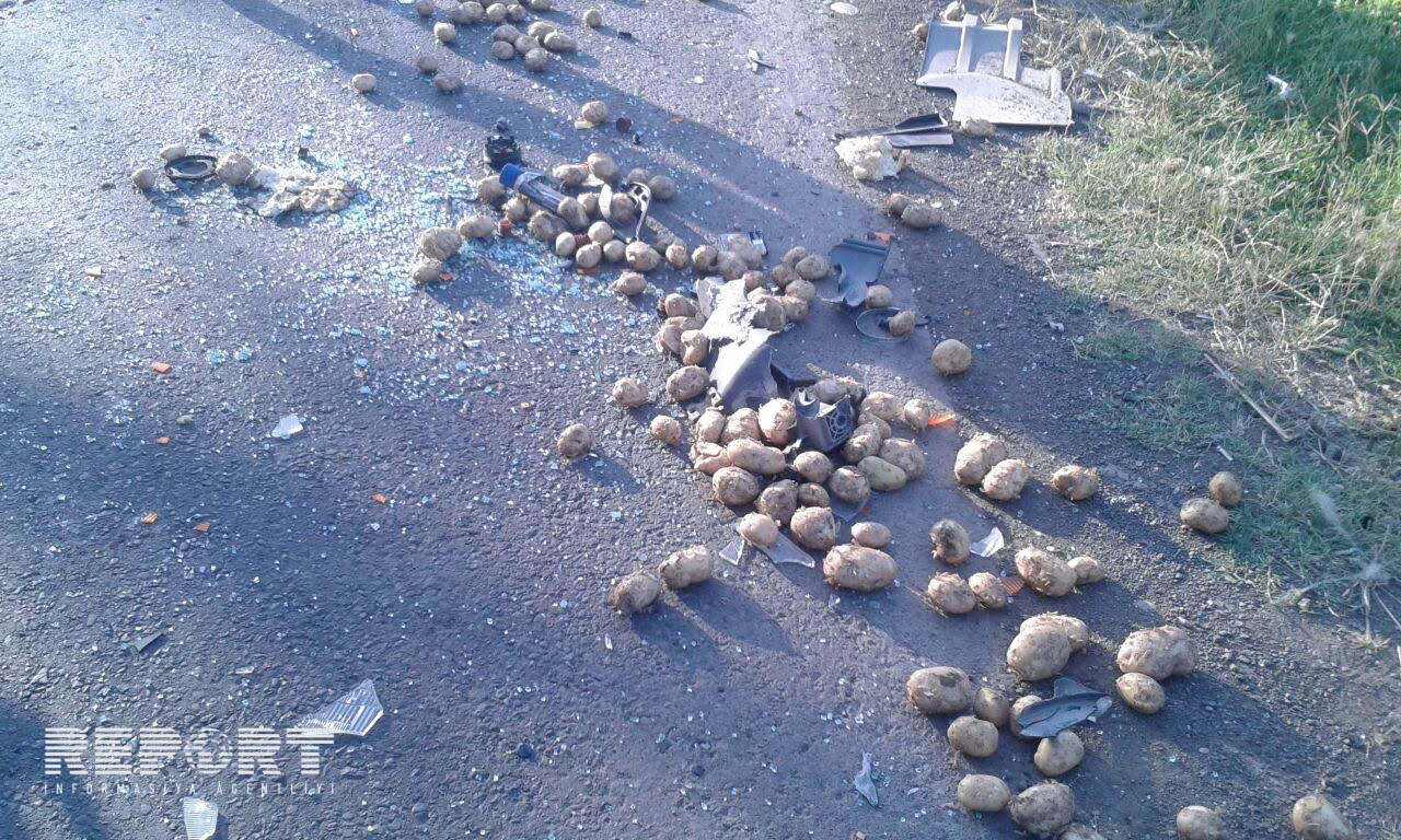 Kartofla dolu yük maşını aşdı, tıxac yarandı - FOTO