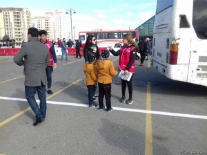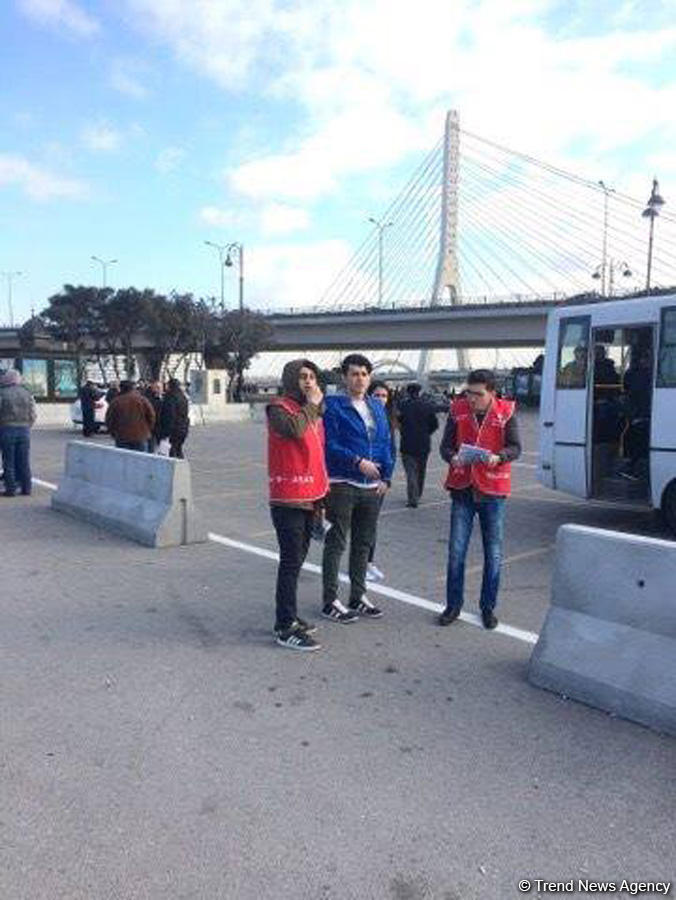 Qurumun əməkdaşları ilə birgə könüllülər sərnişinlərə hərəkət istiqamətləri ilə bağlı məlumatlar verirlər