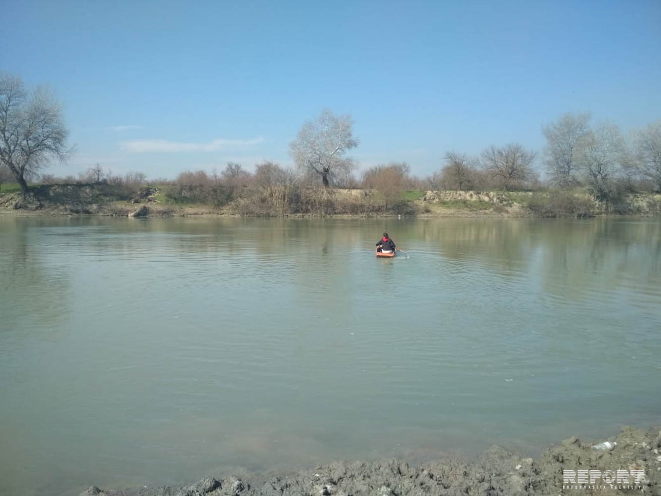 Kür çayında sərnişinləri daşıyan "Qayıqçı" qadın - FOTO