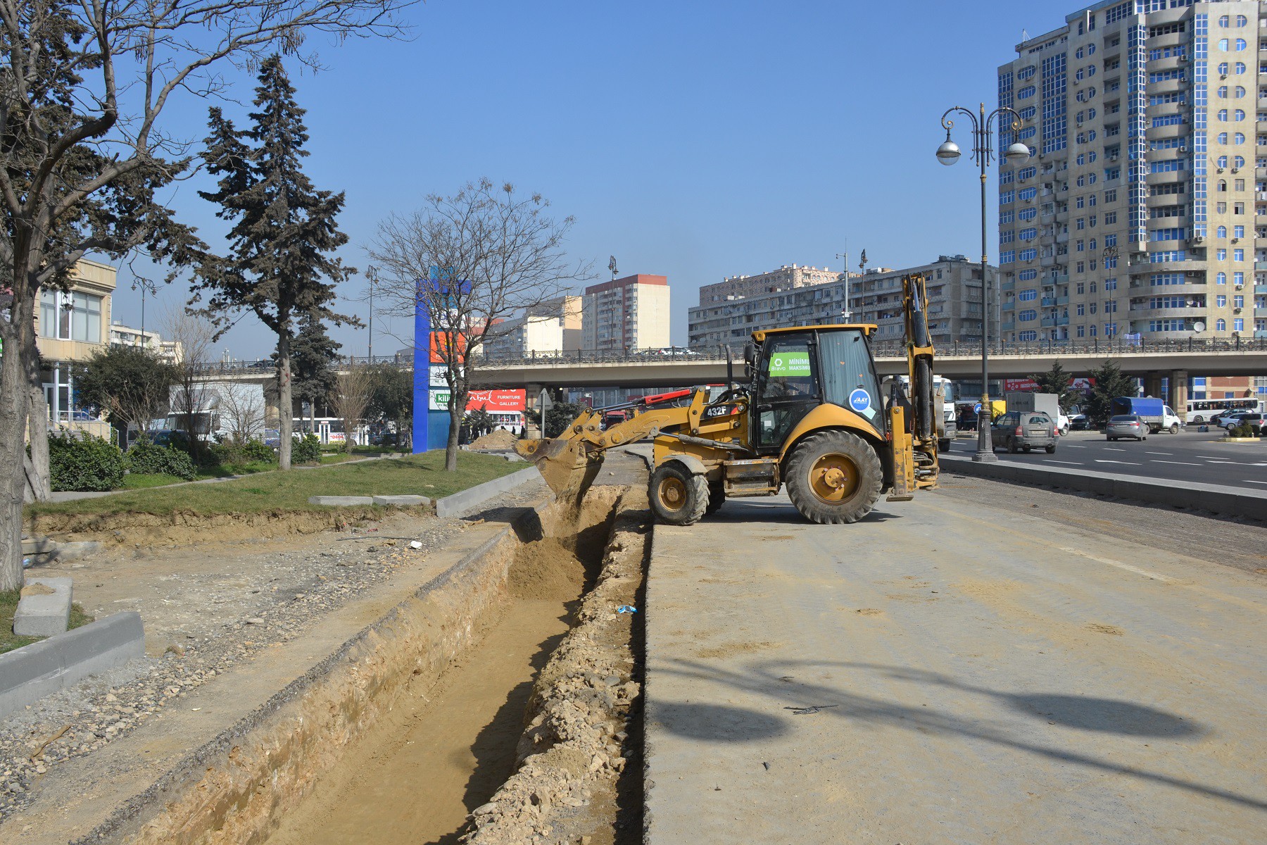 Təmir-tikinti işləri çərçivəsində küçə boyu 130 min kv.m-dən çox sahədə tam yeni və müasir yol infrastrukturu yaradılır. Layihəyə uyğun olaraq küçə boyu köhnə asfalt-beton örtüyü frezlənərək kənara daşınır, zəruri yeraltı kommunikasiya xətləri yenilənir və ya yolun hərəkət hissəsindən kənara çıxarılır,səth sularının kənarlaşdırılması üçün zəruri olan yerlərdə yeni yağış-kanalizasiya sistemi yaradılır, mövcud sistem isə bərpa olunara işlək vəziyyətə salınır. Aparılan işlər zamanı kommnikasiya xətlərinin dəmir-beton plitələri qaldırılaraq 84 ədəd yeni baxış qapaqları qoyulacaq, səth sularının axıdılması üçün isə 57 nöqtədə yağış barmaqlıqları quraşdırılacaq.