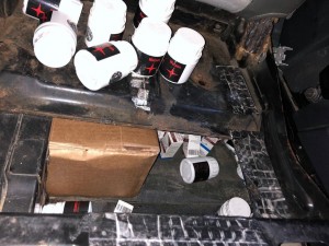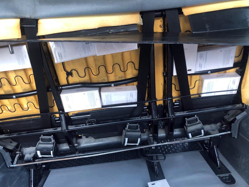 Komitədən Avtosfer.az-a verilən məlumata görə, Azərbaycan vətəndaşının idarə etdiyi avtomobilə baxış zamanı nəqliyyat vasitəsinin salonundakı müxtəlif gizli saxlanc yerlərindən qutuları və aksessuarları ilə birlikdə olan 4 ədəd "İphone 8 Space Gray", 1 ədəd "İphone 8 Plus Space Gray" və 15 ədəd "İphone 8 Plus Gold" markalı mobil telefonlar, 5 600 həb "Oxandrolone 50 ml", 6500 həb "Turanabol 50 ml", 60 flakon "Boldenone 300 mg/ml", 50 flakon "Trenbolone 100 mg/ml", 49 flakon "Sustanon 300 mg/ml", 39 flakon "Nandrolone 325 mg/ml", 49 flakon "Testosterone 100 mg/ml", 50 flakon "Masterone 100 mg/ml" və 50 flakon "Testosterone 300 mg/ml" adlı dərman preparatları aşkar edilib.