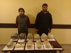 Dövlət Sərhəd Xidməti tərəfindən dövlət sərhədinin etibarlı mühafizəsinin təmin edilməsi, narkotik vasitələrin qanunsuz dövriyyəsinə qarşı mübarizə sahəsində sərhəd mühafizə və əməliyyat-axtarış fəaliyyətləri davam etdirilir. DSX-dən Avtosfer.az-a verilən məlumata görə, fevralın 12-də saat 21:00 radələrində Dövlət Sərhəd Xidmətinin Sərhəd Qoşunlarının “Horadiz” sərhəd dəstəsinin Beyləqan rayonunun İmamverdili kəndi yaxınlığında yerləşən sərhəd zastavasının ərazisində içərisində 2 nəfərin olduğu “Mersedes-Benz” markalı 99-FR-932 dövlət nömrə nişanlı avtomobilin əraziyə yaxınlaşması, avtomobildəki şəxslərdən birinin düşərək beton konstruksiyalı körpünün yanında kolların arasında gizlədilmiş 2 ədəd qara rəngli idman çantasını götürməsi sərhəd naryadının diqqətini cəlb edib. Sərhəd naryadının “Dayan” əmrinə tabe olmayaraq ərazidən uzaqlaşmağa cəhd edən naməlum şəxslər saxlanılıblar. Onların Bərdə rayon sakini 1995-ci il təvəllüdlü Əşrəfli Xəyal Teymur oğlu və Tərtər rayon sakini 1998-ci il təvəllüdlü Nəsirzadə Nicat Yaşar oğlu olmaları müəyyənləşdirilib, əllərindəki çantalara baxış zamanı içərisində ümumi çəkisi 11 kiloqram 340 qram narkotik vasitə (4565 qram “heroin”, 5565 qram “marixuana”, 1210 qram “metamfetamin”) və 1000 ədəd “metadon-40” psixotrop tərkibli həblər aşkar olunaraq götürülüb. N.Nəsirzadənin üzərinə baxış keçirilərkən gödəkçəsinin sağ cibindən xırda bükümdə 3 qram narkotik vasitə “heroin” aşkarlanıb.