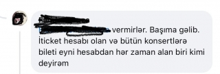 “Mən “iTicket” hesabımdan daim tədbirlərə bilet alıram. Amma ləğv edilən konsertlərlə bağlı heç vaxt SMS və ya mail almamışam. Halbuki bütün məlumatlarım düzgün qeyd olunub”.