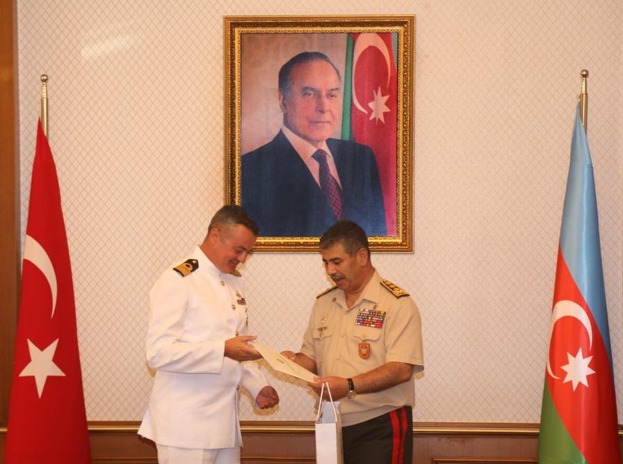Müdafiə naziri general-polkovnik Zakir Həsənov Hərbi Hava Qüvvələrinin qəzaya uğramış MiQ-29 təyyarəsinin axtarışlarında ölkəmizin müvafiq qurumları ilə birlikdə fəal iştirak edən Türkiyə Respublikası Hərbi Dəniz Qüvvələrinin xilasetmə qrupunun üzvləri ilə görüşüb.