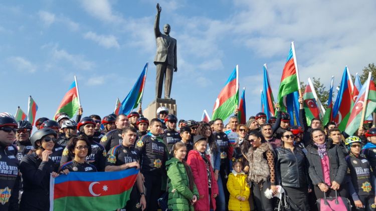 Aksiya iştirakçıları Heydər Əliyev abidəsi önünə əklil qoyublar.
