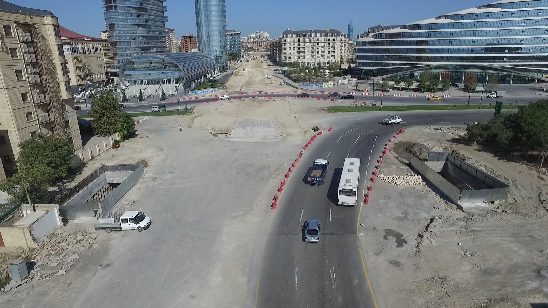 "Ağ şəhər" avtomobil yollarının infrastruktur layihəsi” çərçivəsində Xəqani Rüstəmov küçəsi ilə Nobel prospektinin və Süleyman Vəzirov küçəsinin kəsişmələrində 2 yeraltı piyada keçidinin tikintisi işləri aparılır.