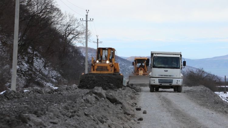 Oğuzda avtomobil yolu yenidən qurulur – FOTO + VİDEO