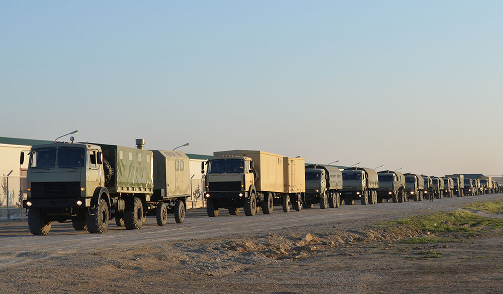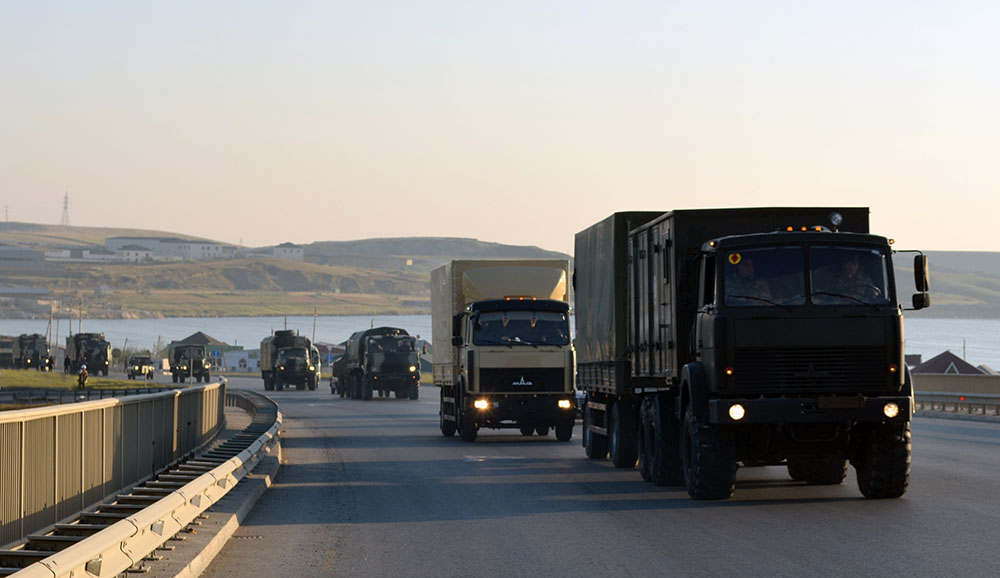 Genişmiqyaslı təlimlərin keçirilməsi planına uyğun həyəcan siqnalı ilə qaldırılan qoşunlar və komanda idarəetmə məntəqələri əməliyyat təyinatı rayonları istiqamətində hərəkət edirlər. Bu barədə Avtosfer.az-a Müdafiə Nazirliyinin mətbuat xidmətindən məlumat verilib. Qoşunların idarə edilməsi, onların təşkili üzrə yüksək tələblərə uyğun olaraq, gizli və operativ şəkildə həyata keçirilir. Şəxsi heyətin və hərbi texnikanın bütün hərəkəti komendant xidməti tərəfindən tənzimlənir.