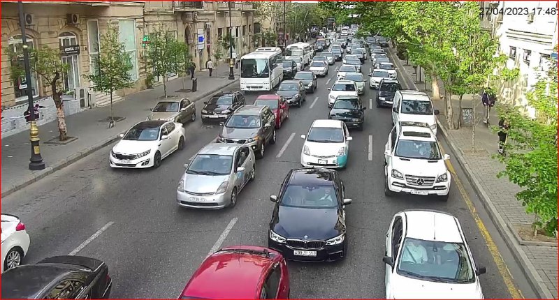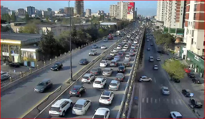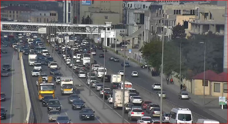 11. Bakıxanov küçəsi, İnşaatçılar prospekti ilə kəsişmədən "Dədə Qorqud" parkı istiqamətində sıxlıq müşahidə olunur.