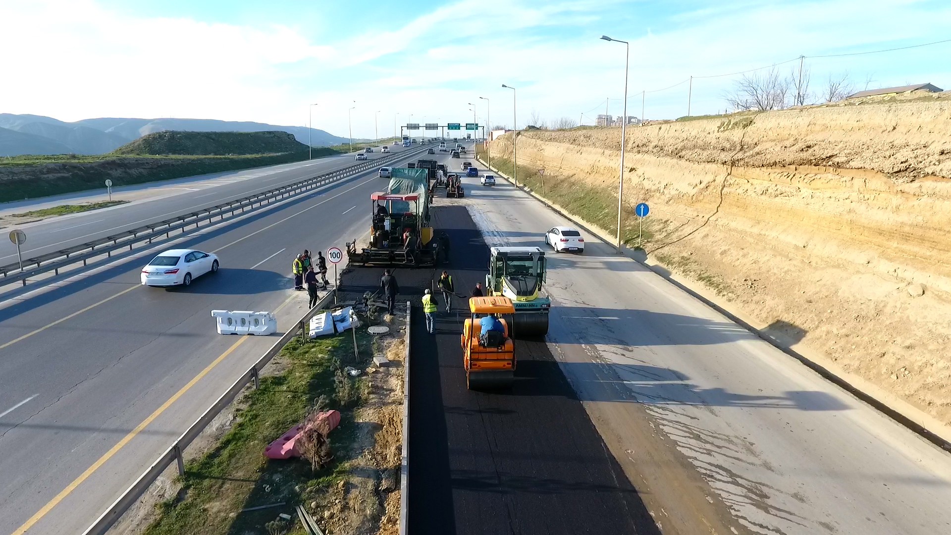 Təmir işləri zamanı çatlar əmələ gəlmiş hissələrdə köhnə asfalt beton örtüyünün üst qatı frezlənərək kənara daşınıb, əvəzinə yeni asfalt-beton örtüyünün döşənməsi işləri həyata keçirilib. Asfaltlanma işləri ümumilikdə 60 min kv.m-dən çox sahəni əhatə edib.