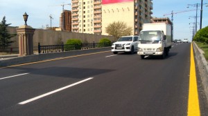 Daha sonra avtonəqliyyat vasitələrinin normal hərəkətinin təşkili üçün yolcizgi və yolgöstərici xətlər çəkilib.