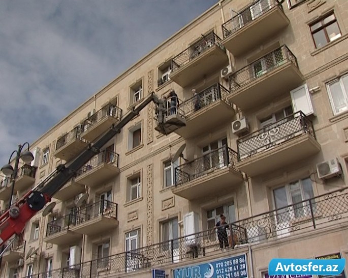 Polis Bakıda balkonlardan asılan paltar iplərini sökməyə başladı - FOTO