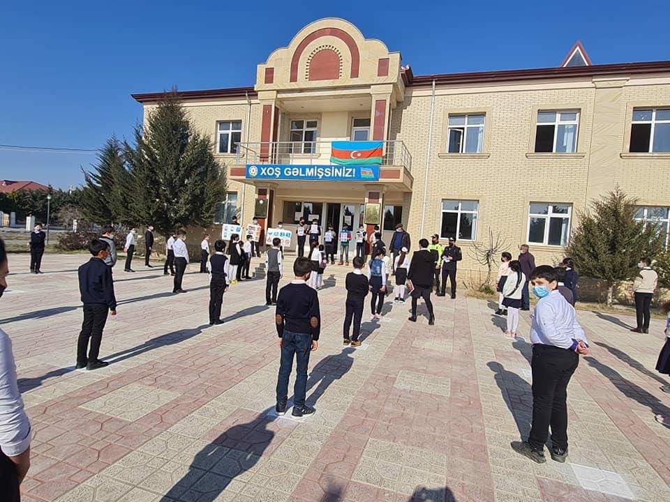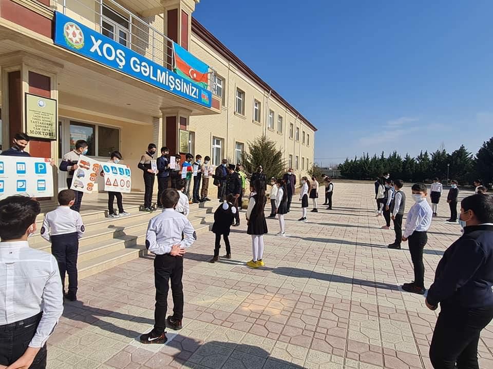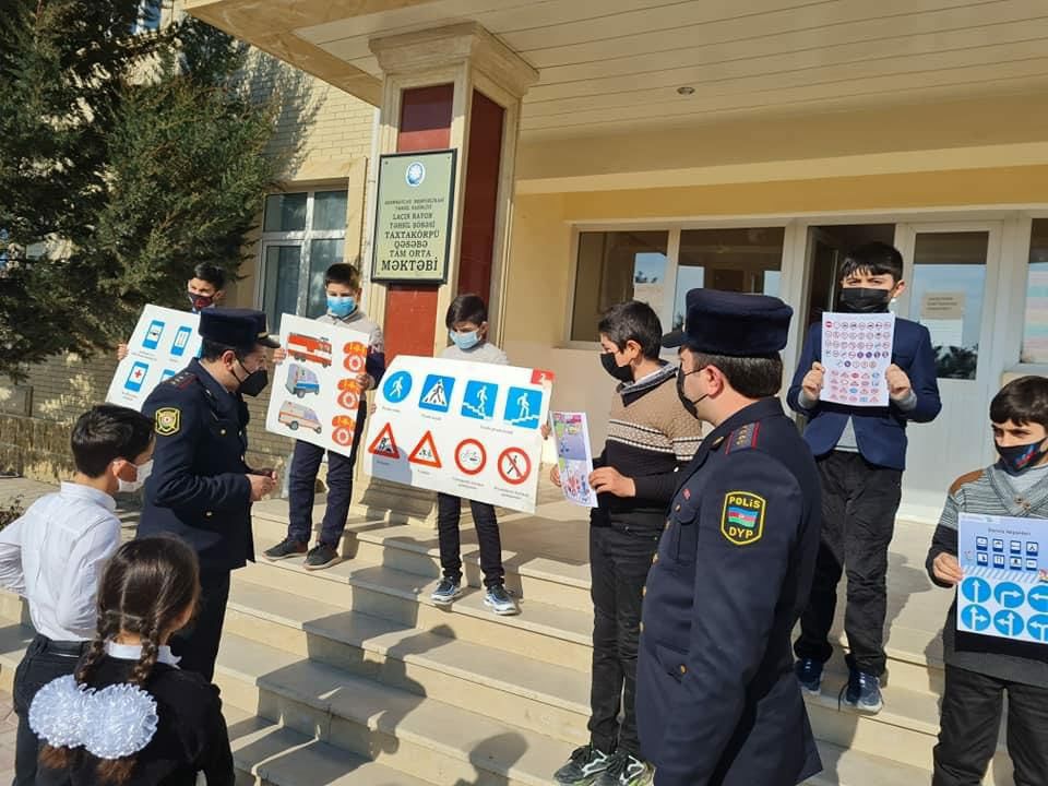 Yol polisi əməkdaşlarının iştirak etdiyi tədbirdə, xüsusi karantin qaydaları, sosial məsafə gözlənilməklə şagirdlər yol hərəkəti qaydaları ilə yaxından tanış edilib və bədbəxt hadisə yarada biləcək təhlükələr barədə məlumatlandırılıb.