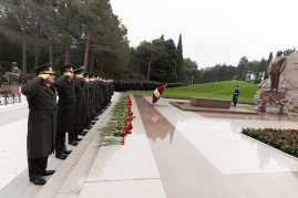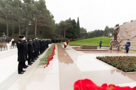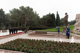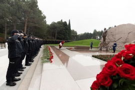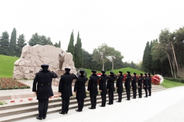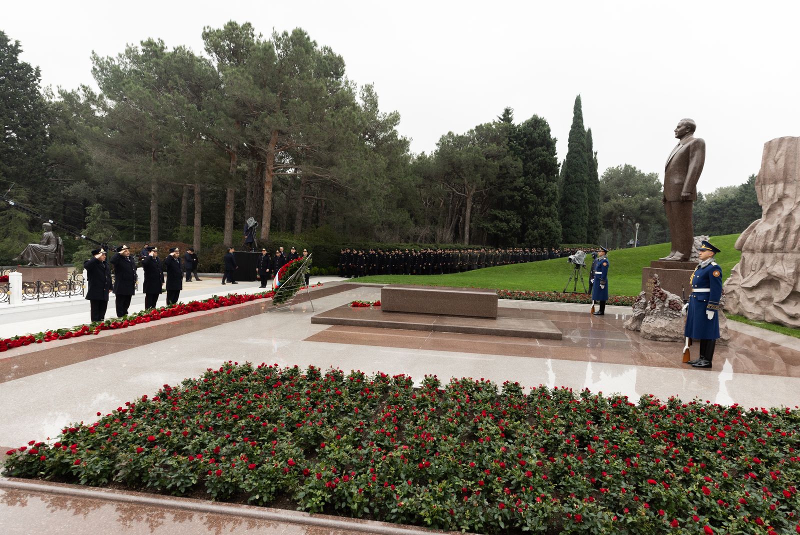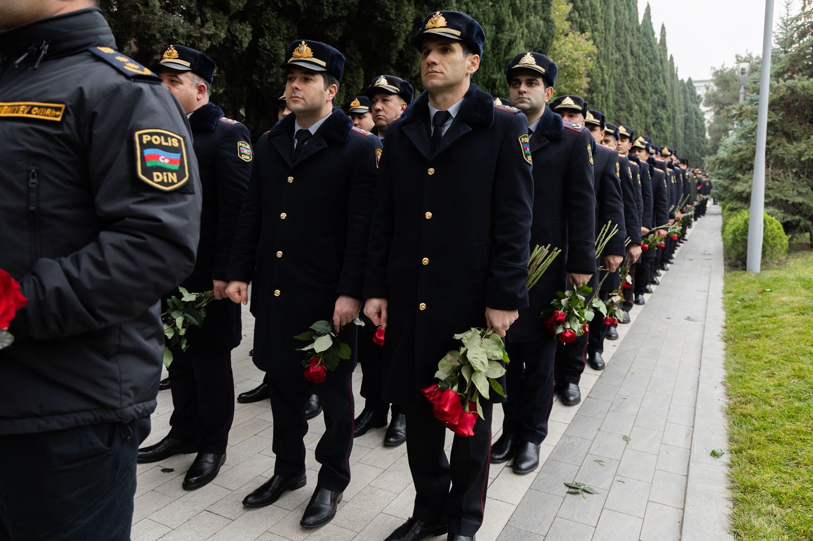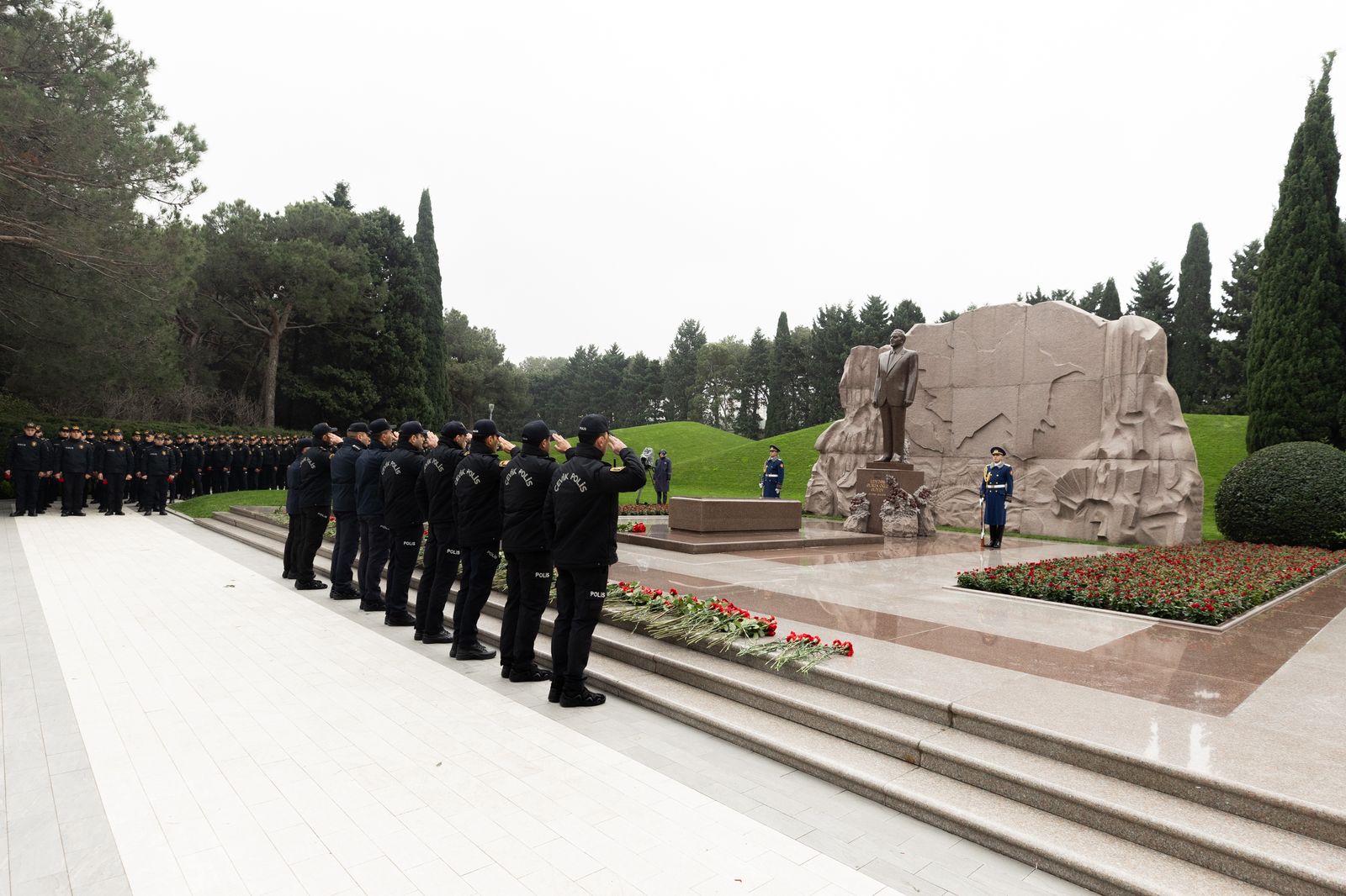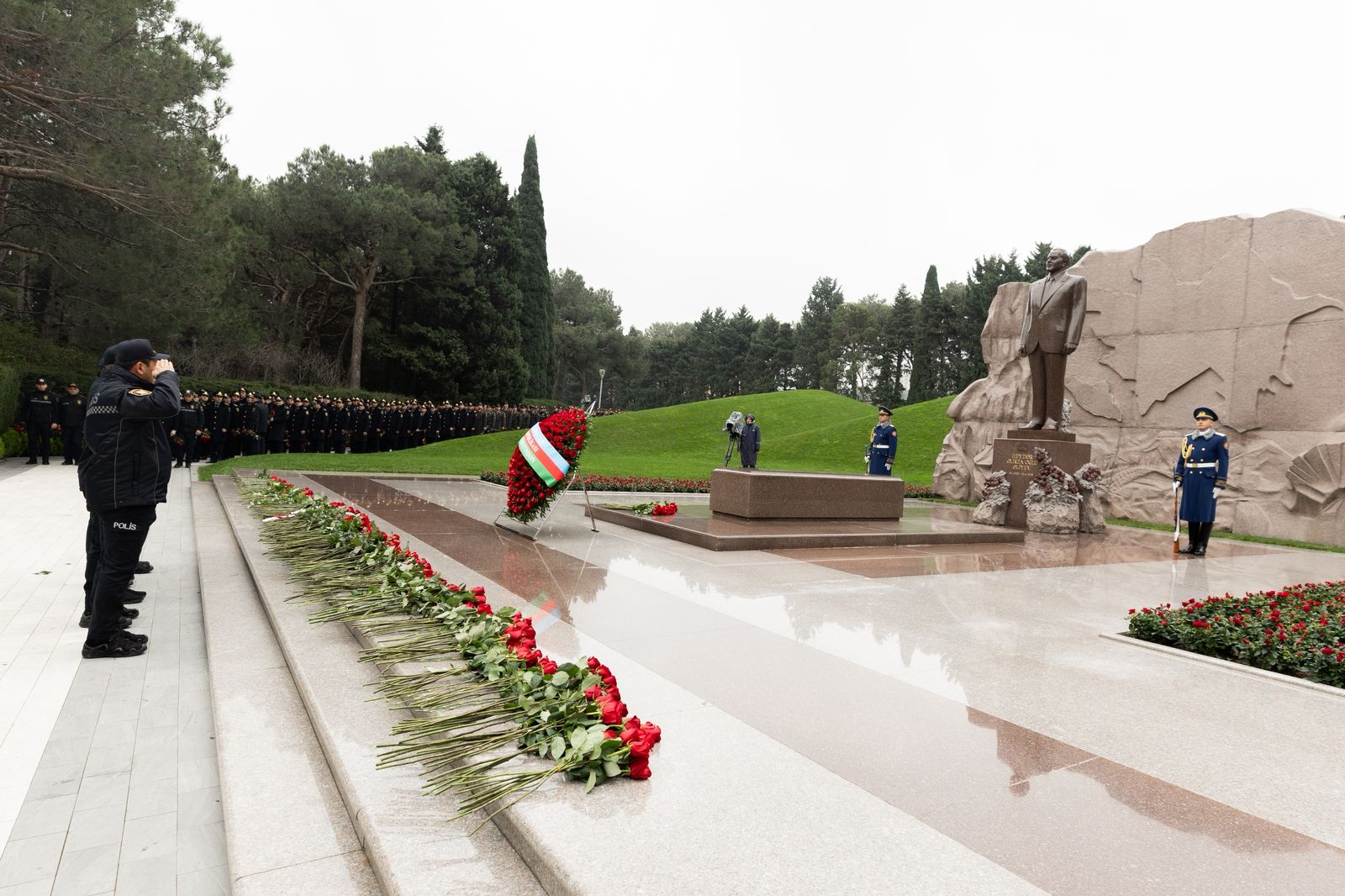 Polis əməkdaşları və Daxili Qoşunların hərbi qulluqçuları Fəxri Xiyabanda Ulu Öndər Heydər Əliyevin məzarını ziyarət edərək, onun əziz xatirəsini dərin hörmət və ehtiramla anıblar.