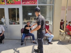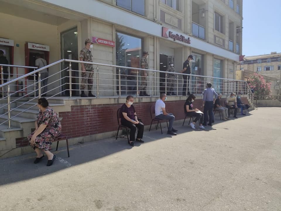 İdarə əməkdaşları həmin ərazilərə sakinlərin rahatlığını təmin etmək məqsədi ilə sosial məsafə gözlənilməklə stullar düzüb, hava şəraiti ilə əlaqədar mütəmadi olaraq növbə gözləyən sakinlərə içməli sular verir, tibbi maskası olmayanlara maskalar paylayırlar.