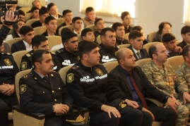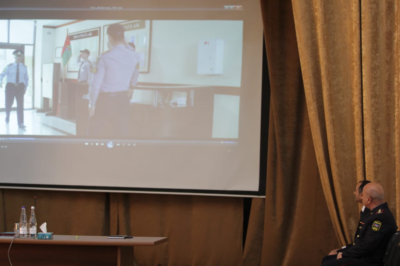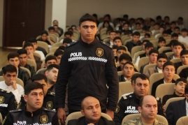 Çıxış edən RPŞ-nin rəisi, polis polkovniki Elçin Qasımov və digərləri gənclərin vətənpərvərlik ruhunda və sağlam böyümələrinin, müasir informasiya texnologiyaları haqqında bacarıqlara yiyələnməyin əhəmiyyətini qeyd ediblər. Gənclərimizə yaxşı təhsil almağın vacibliyi diqqətə çatdırılıb, dərslərində uğurlar arzulayıblar. Daha sonra Polis Akademiyasının tarixi, daxili işlər orqanlarında xidmətin şərəflilyi, şagirdlərin DİN sistemində təhsilə təşviq edilməsi, sağlam həyat tərzinin təbliği mövzusunda bəhs olunub.