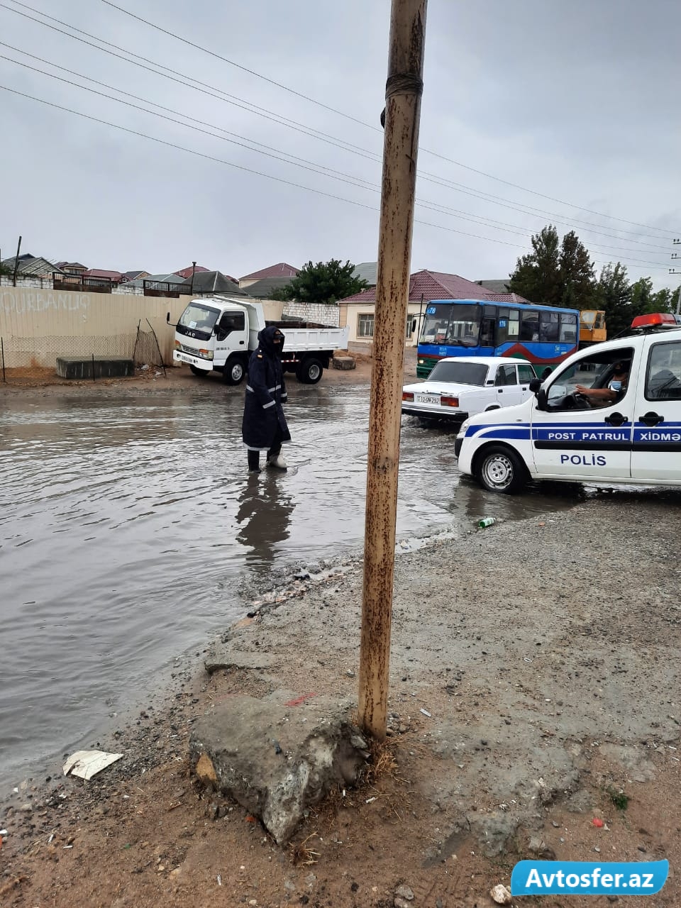 Polis yağışlı havada vətəndaşlara belə xidmət edir - FOTO