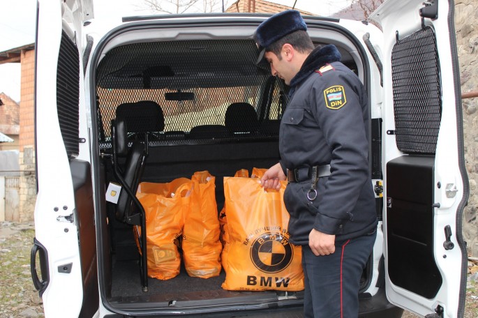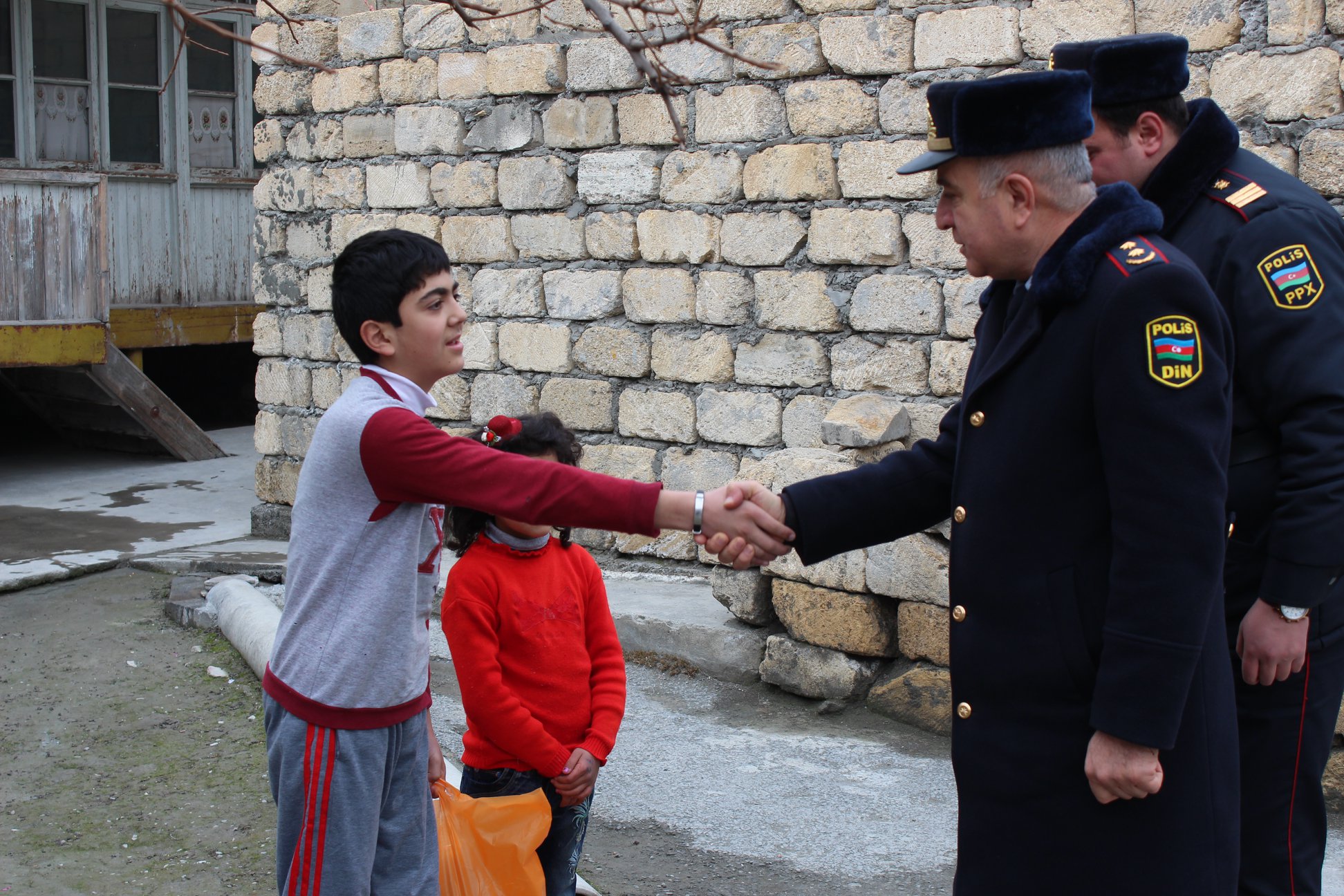 Polislər aztəminatlı ailələrə bayram sovqatı paylayıb - FOTO