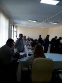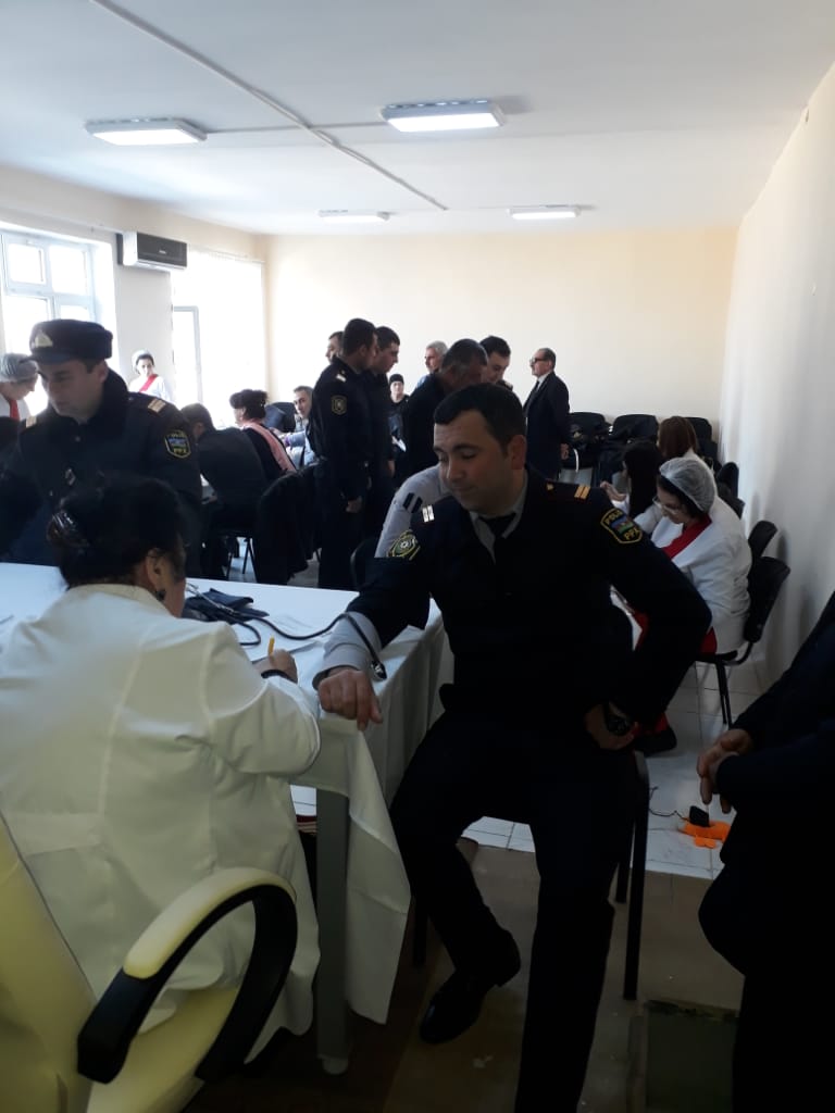 Polis əməkdaşları əvvəlcə tibbi müayinədən keçiriliblər, sonra isə qan vermək üçün masalara yaxınlaşıblar.