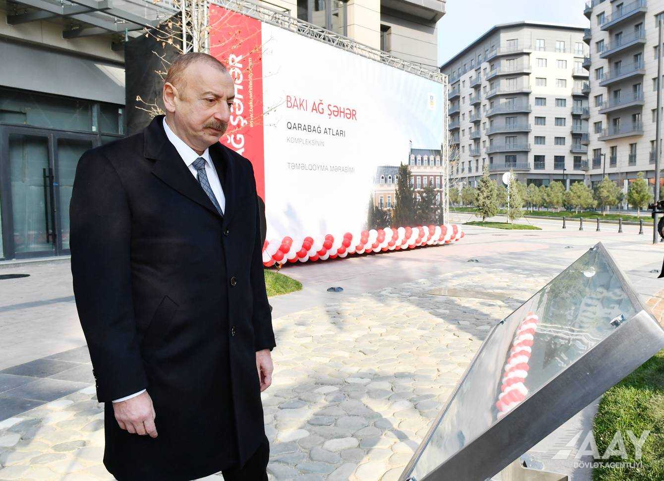 Sonra dövlətimizin başçısı Bakı Ağ Şəhər Qarabağ Atları Kompleksinin təməlini qoydu.