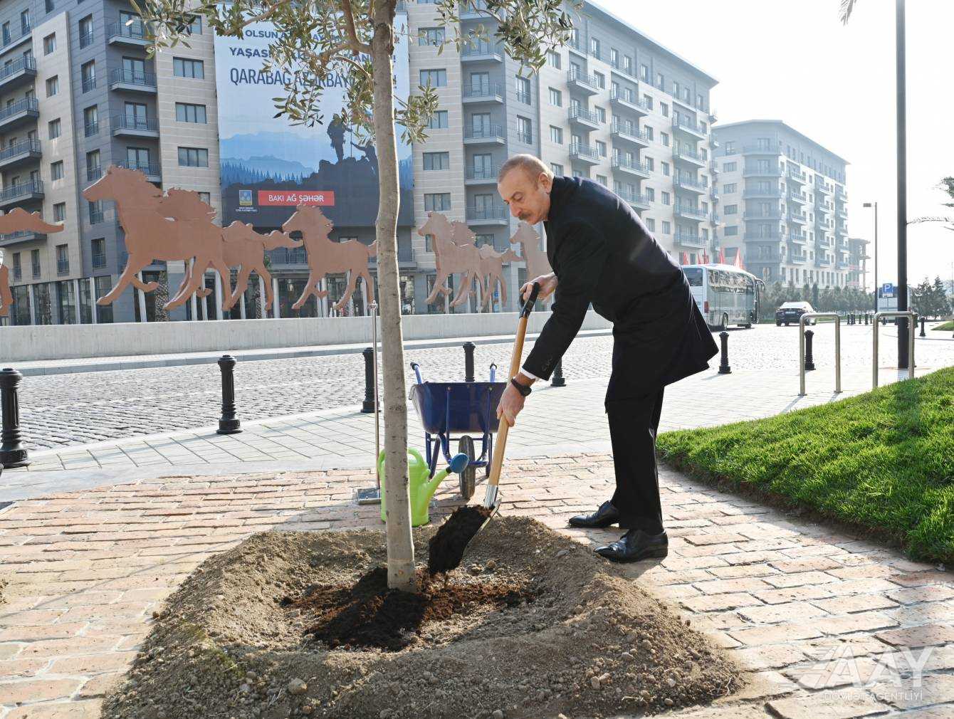 Prezident İlham Əliyev Qarabağ Atları Meydanına gələrək burada ağac əkdi.