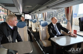 Prezident İlham Əliyev avtobusla Bakı Ağ Şəhər Mərkəzi Park Kvartalını gəzdi.