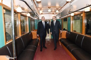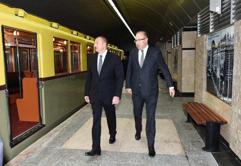 Sonra Prezident İlham Əliyev retro vaqonlardan ibarət qatarla “İçərişəhər” stansiyasından “Nəriman Nərimanov” stansiyasına gəlib.