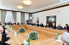 Sonra Prezident İlham Əliyev Qərbi Azərbaycandan olan bir qrup ziyalı ilə görüşüb.