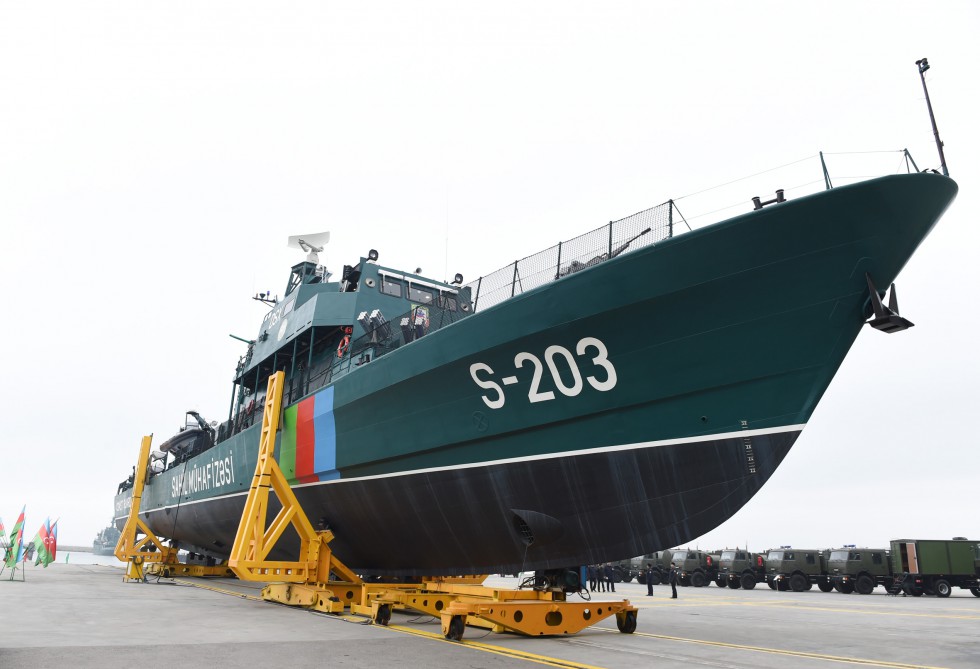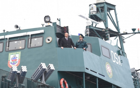 Prezident, Ali Baş Komandan İlham Əliyev sərhəd gözətçi gəmilərinin keçidinə baxıb. Azərbaycan Prezidenti İlham Əliyev Dövlət Sərhəd Xidmətinin Sahil Mühafizəsinin Gəmi İnşası və Təmiri Mərkəzində “Tufan” tipli növbəti sərhəd gözətçi gəmisinin təməlini qoyub. Sonra Ali Baş Komandan yeni alınmış avtonəqliyyat vasitələri və digər xüsusi texnikalar ilə də tanış olub.