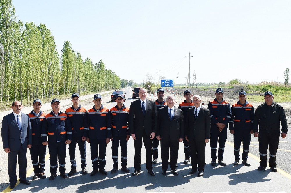 Azərbaycan Respublikasının Prezidenti İlham Əliyev mayın 4-də Xaçmaza səfəri çərçivəsində Çarxı-Qalağan-Hacılar-Xanlıqoba-Sayad-Məmmədxanlı avtomobil yolunun yenidənqurma və bərpadan sonra açılışını edib. Avtosfer.az-ın xəbərinə görə, Prezident İlham Əliyevin tapşırıq və göstərişlərinə əsasən, ölkə əhəmiyyətli yollarla yanaşı, yeni kənd yollarının inşası, mövcudlarının isə müasir səviyyəyə çatdırılması sahəsində mühüm layihələrin icrası uğurla davam edir. Onlardan biri də Xaçmaz-Xudat avtomobil yoludur. Bu yolun yenidən qurulması ilə bağlı həyata keçirilən layihə sübut edir ki, ölkəmizdə avtomobil yollarının tikintisi və yenidən qurulması davamlı xarakter alıb. Bu tədbirlər vətəndaşların həyat şəraitinin yaxşılaşdırılması ilə yanaşı, Azərbaycan iqtisadiyyatının inkişaf səviyyəsini göstərir. Kənd və qəsəbələri birləşdirən yolların müasir səviyyədə yenidən qurulması, ümumilikdə, həmin bölgənin turizm potensialının möhkəmləndirilməsi işinə də xidmət göstərir. Yolların yenidən qurulması yerləşdikləri ərazilərdə yük və sərnişin daşımasını xeyli yaxşılaşdırır, yetişdirilən məhsulların rahat şəkildə yaxın-uzaq bazarlara daşınmasına imkan yaradır. Bu da kənd təsərrüfatının inkişafına müsbət təsir etməklə yolboyu yaşayan əhalinin sosial rifahının yüksəlməsinə imkan verir. "Report" xəbər verir ki, Azərbaycan Avtomobil Yolları Dövlət Agentliyi İdarə Heyətinin sədri Saleh Məmmədov yeni yolun texniki göstəriciləri barədə dövlət başçısına məlumat verib. Bildirildi ki, birinci və üçüncü texniki dərəcəli yolun uzunluğu 24 kilometrdir. 2-4 hərəkət zolağına malik yolun hərəkət hissəsinin eni 7-15 metrdir. Hər iki tərəfdən çiyinlərin eni 2,5 metr, torpaq yatağının eni 19 metrdir. Yolun tikintisi zamanı genişmiqyaslı torpaq işləri görülüb, 2 laydan ibarət 13 santimetr qalınlığında asfalt-beton örtüyü döşənib. Yolboyu asfalt-beton qarışığından səkilər tikilib, geniş ərazidə beton səki daşları düzülüb. Yolda lazım olan bütün infrastruktur yaradılıb, xeyli sayda yol nişanları və göstərici lövhələr quraşdırılıb, yol cizgi xətləri çəkilib. Xaçmaz-Xudat avtomobil yolunun yenidən qurulması 54 min nəfər əhalisi olan 59 yaşayış məntəqəsini birləşdirən yük və sərnişin daşımasını xeyli yaxşılaşdırmağa, bölgədə turizmin inkişafına imkan verməklə yanaşı, Yalama sərhəd keçid məntəqəsi ilə rahat nəqliyyat əlaqəsini də yaratmış olur. Bu da həmin yolun həm də beynəlxalq əhəmiyyətinin bir göstəricisidir. Prezident İlham Əliyev yolun rəmzi açılışını bildirən lenti kəsib. Sonda xatirə şəkli çəkdirilib.