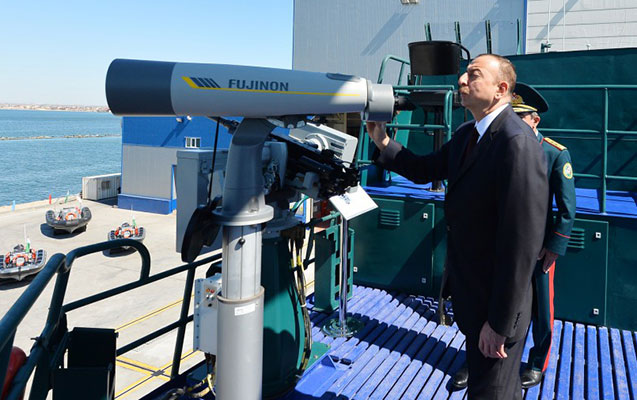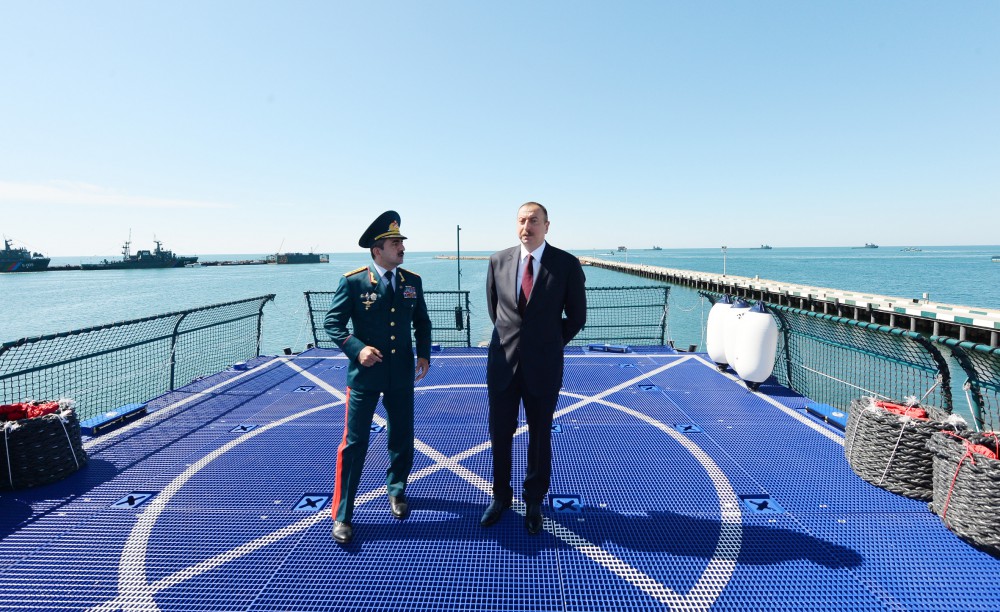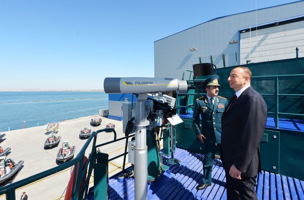 Sonra Azərbaycan Prezidenti sərhəd gözətçi gəmilərinin keçidinə baxdı.