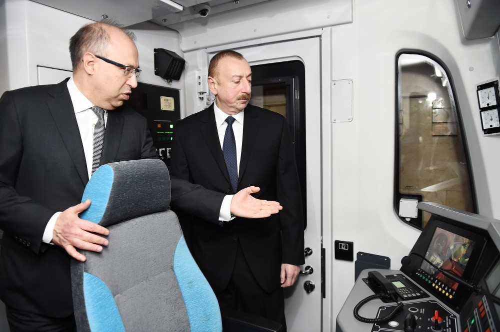 Prezident İlham Əliyev yeni metro vaqonlarına baxıb.
