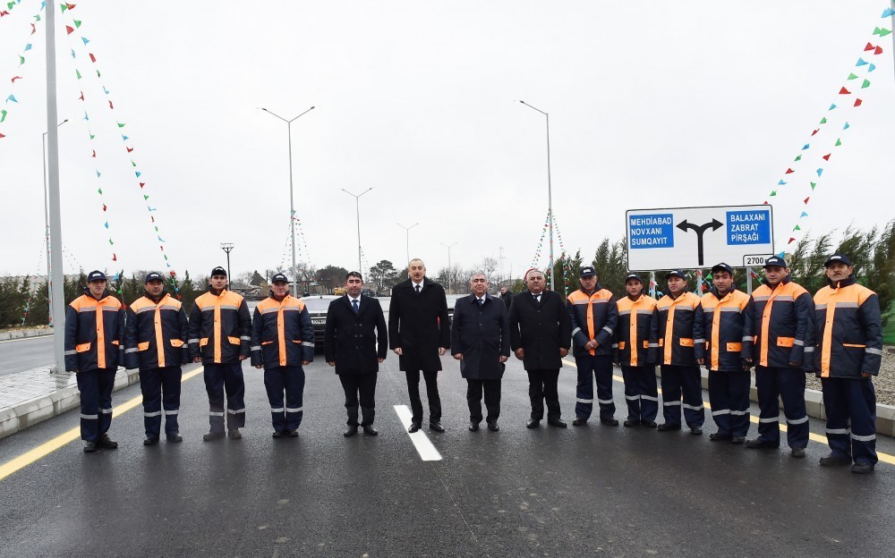 Azərbaycan Respublikasının Prezidenti İlham Əliyev dekabrın 28-də paytaxtın Ziya Bünyadov prospekti ilə Balaxanı-Binəqədi avtomobil yolunu birləşdirən yeni yolun açılışında iştirak edib. Azərbaycan Avtomobil Yolları Dövlət Agentliyinin İdarə Heyətinin sədri Saleh Məmmədov yeni yolda görülən işlər barədə dövlət başçısına məlumat verib. Prezident İlham Əliyev yolun rəmzi açılışını bildirən lenti kəsib.