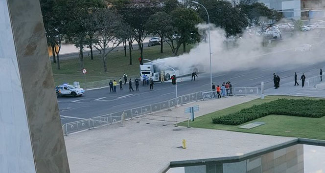 Braziliyada naməlum şəxs prezident Jaira Bolsonarunun rəsmi iqamətgahı qarşısında içərisində sərnişin olan avtobusu yandırıb. Avtosfer.az xəbər verir ki, insident paytaxtın Planaltu sarayının qarşısında baş verib. Bu barədə “G1” portalı məlumat yayıb.