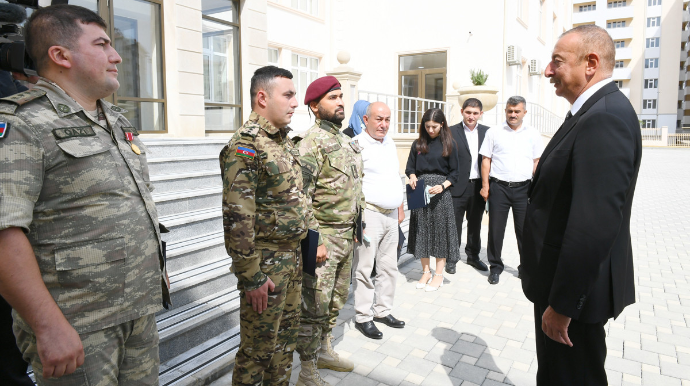 Bu gün şəhid ailələri və müharibə əlilləri üçün yeni salınmış yaşayış kompleksi təqdim edilir. Bu kompleks 810 mənzildən ibarətdir, böyük yaşayış kompleksidir. Mən indi burada yaradılmış şəraitlə tanış oldum, görürəm ki, şərait çox müsbətdir, çox yaxşıdır. Evlər işıqlı, genişdir, 620 nəfərlik məktəb, uşaq bağçası artıq fəaliyyətə hazırdır. Yəni, burada rahat yaşamaq üçün bütün imkanlar var. Burada şəhid ailələri, Qarabağ qaziləri yaşayacaqlar.