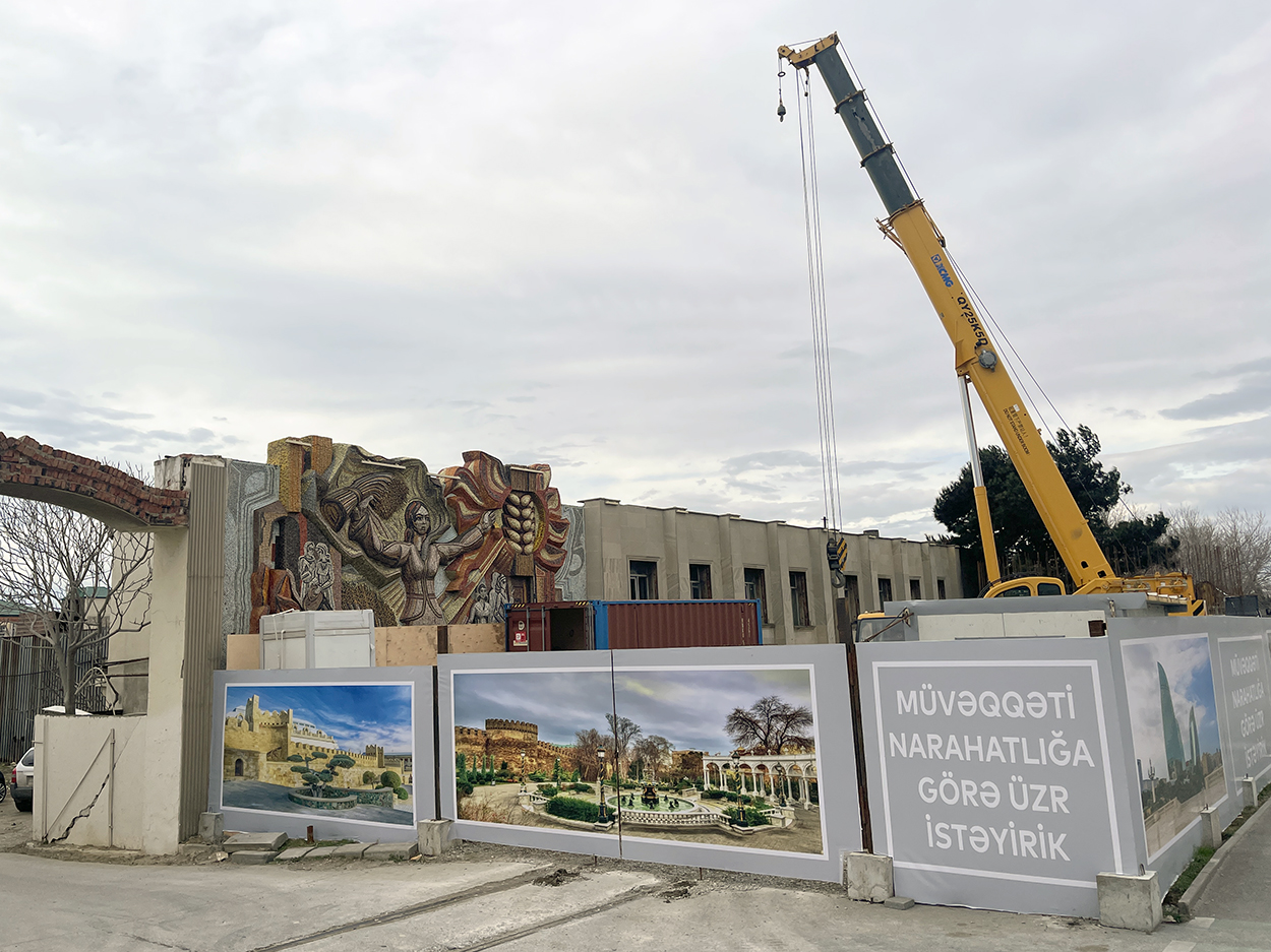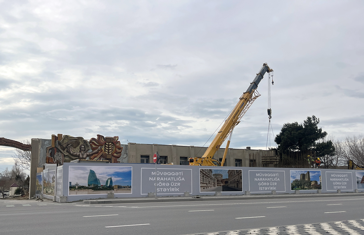 Prospektdəki divarda Sovet dövrünə aid dekorasiya sökülür? – MEMAR - FOTOSESSİYA