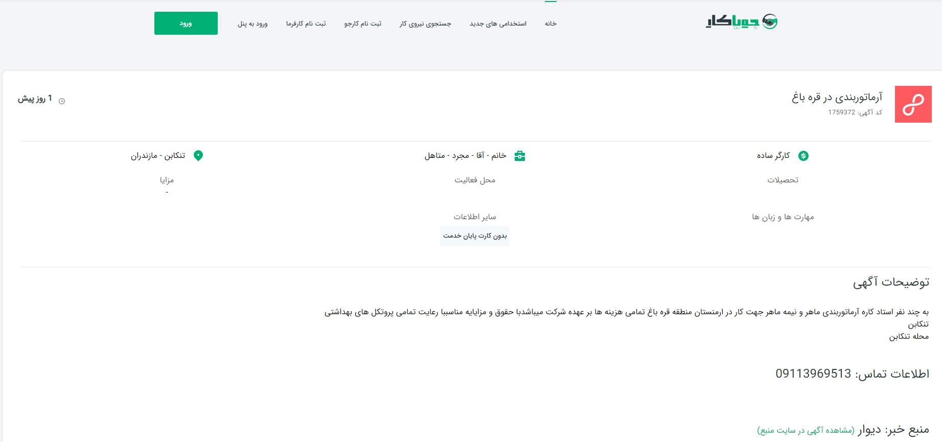 İranın “Jooiakar.com” saytında Qarabağa göndəriləcək işçilərin işə götürülməsi ilə bağlı elan yerləşdirilib.