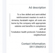 “Ermənistanın Qarabağ regionunda işləmək üçün ixtisaslı və qeyri-ixtisaslı ustalara ehtiyac var. İşçilərin saxlanması üçün bütün xərcləri şirkət öz üzərinə götürür”, - elanın mətnində deyilir.